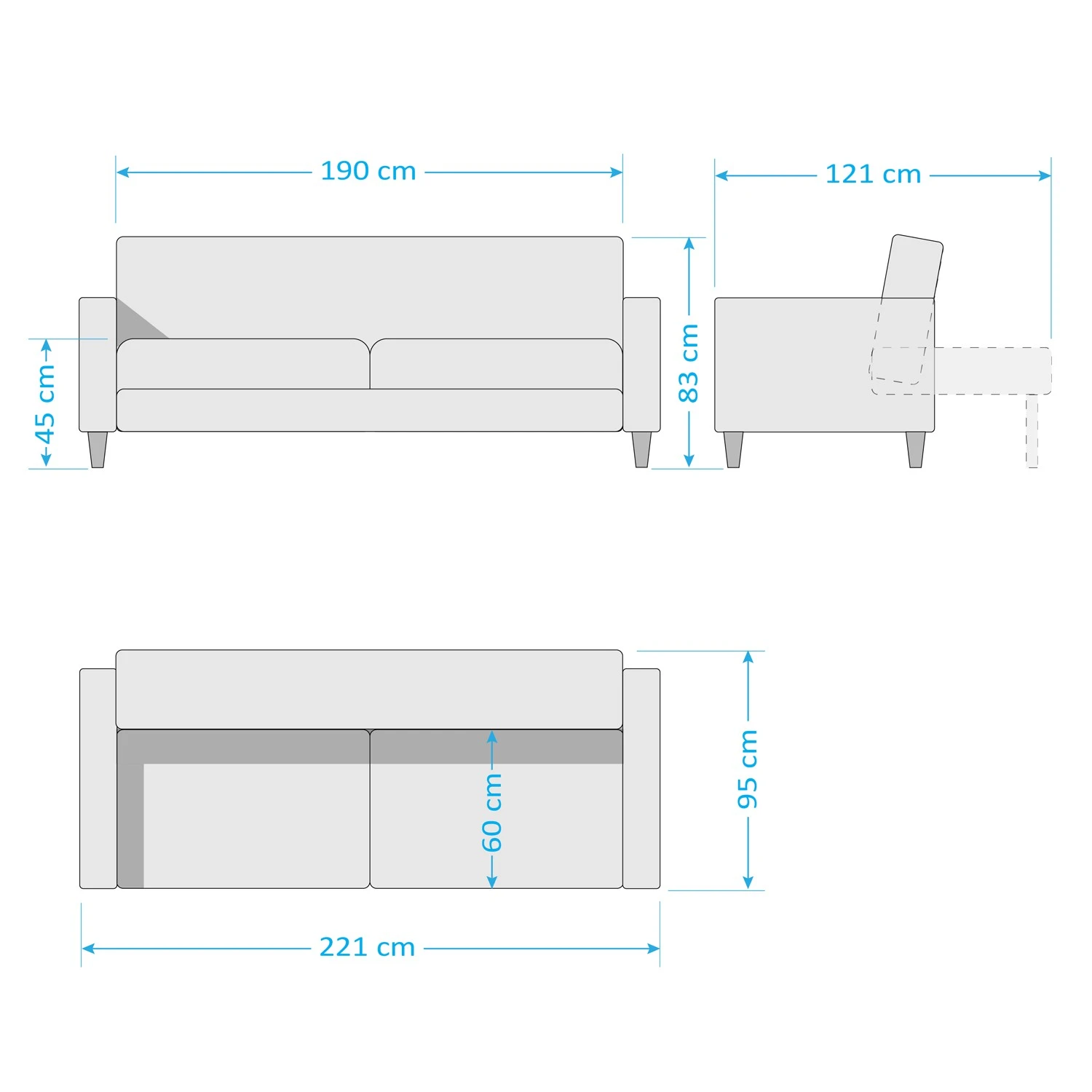 - Sitztiefe: 60 cm