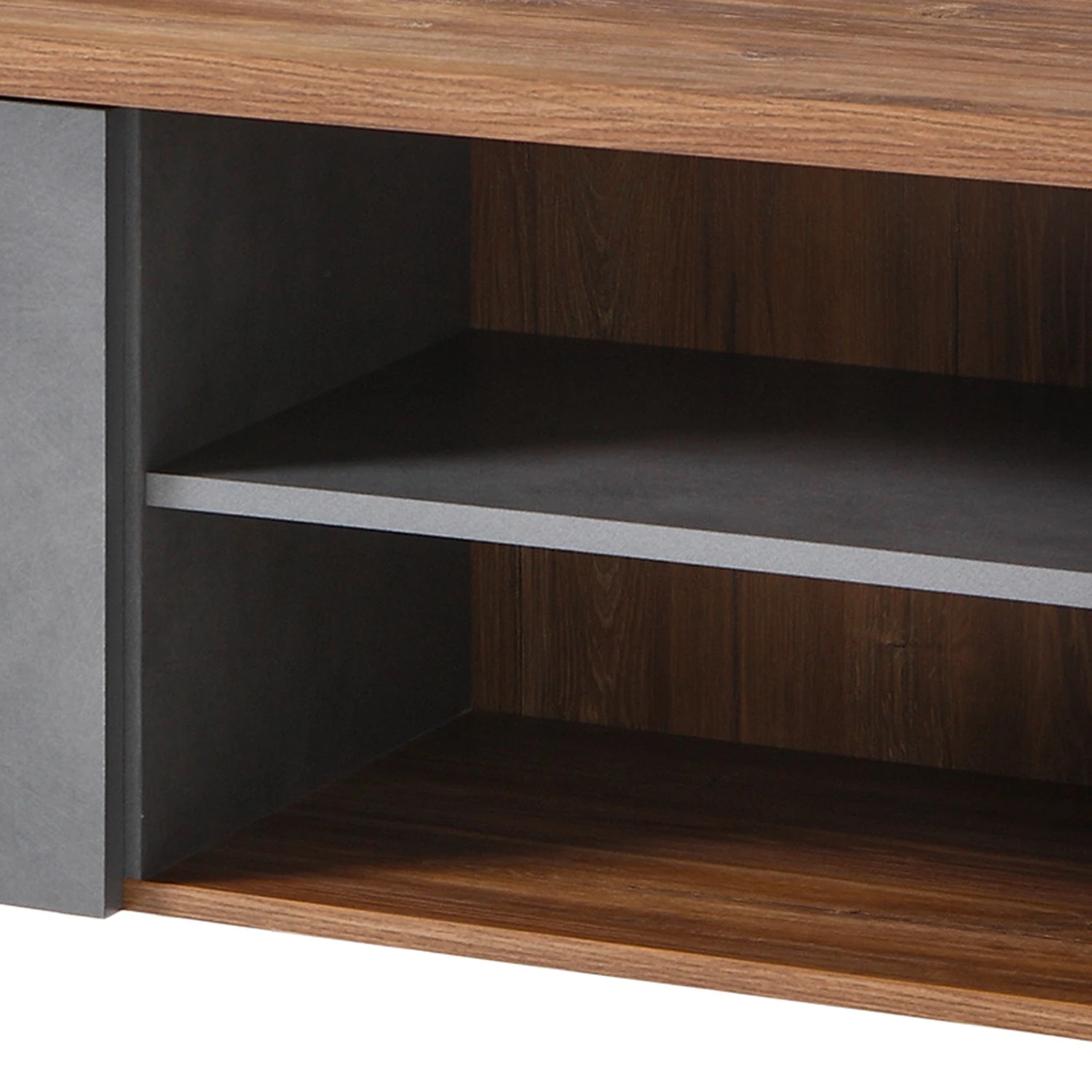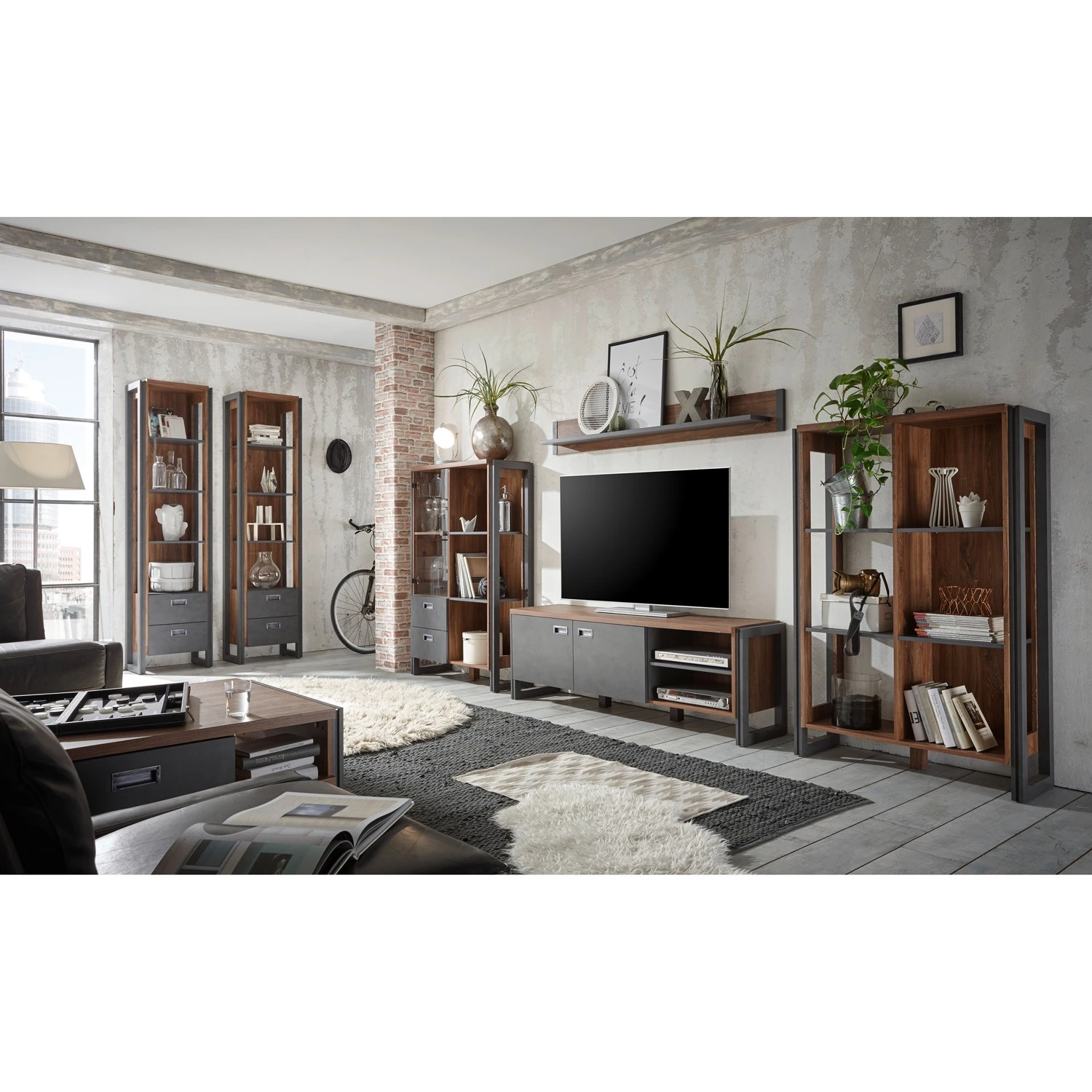- Lieferumfang: Wohnwand bestehend aus 2 Regalen, 1 TV-Lowboard & 1 Wandboard ohne Dekoration