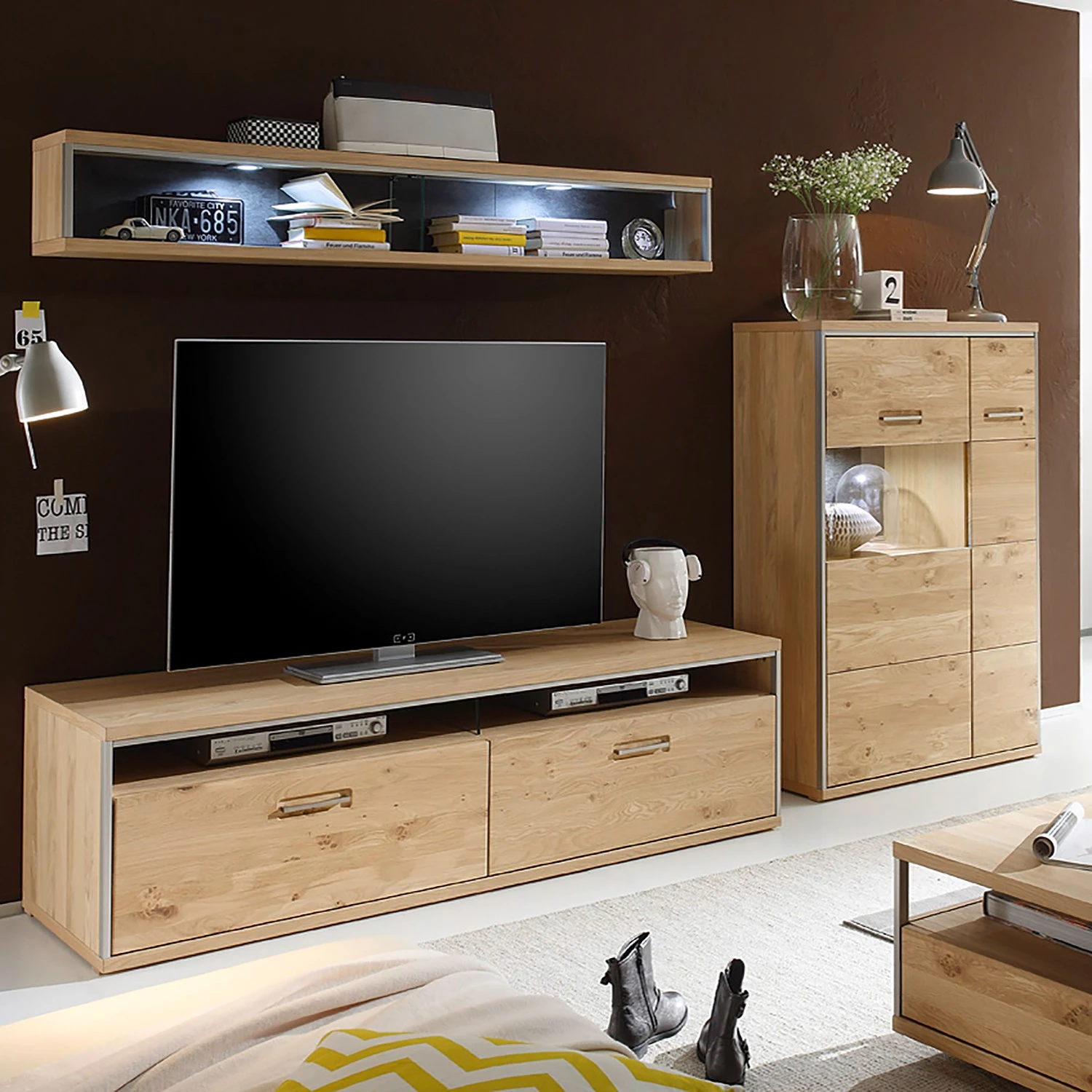 - Lieferumfang: 3-teilige Wohnwand ohne Dekoration