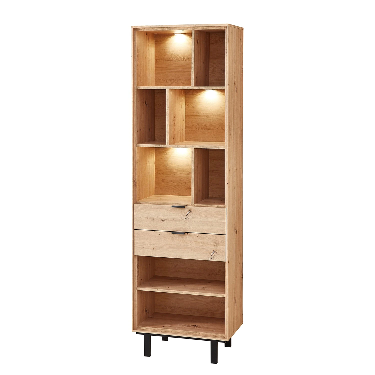 - Lieferumfang: Wohnwand bestehend aus 1 Regal, 2 Wandboards & 1 Lowboard inkl. Beleuchtung, ohne Dekoration