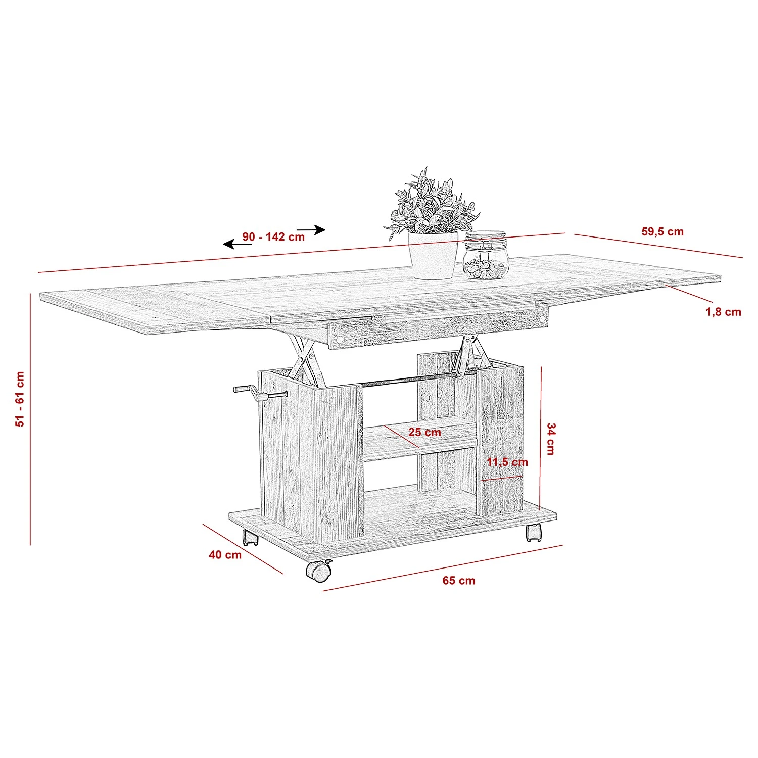- Breite: 90 – 142 cm