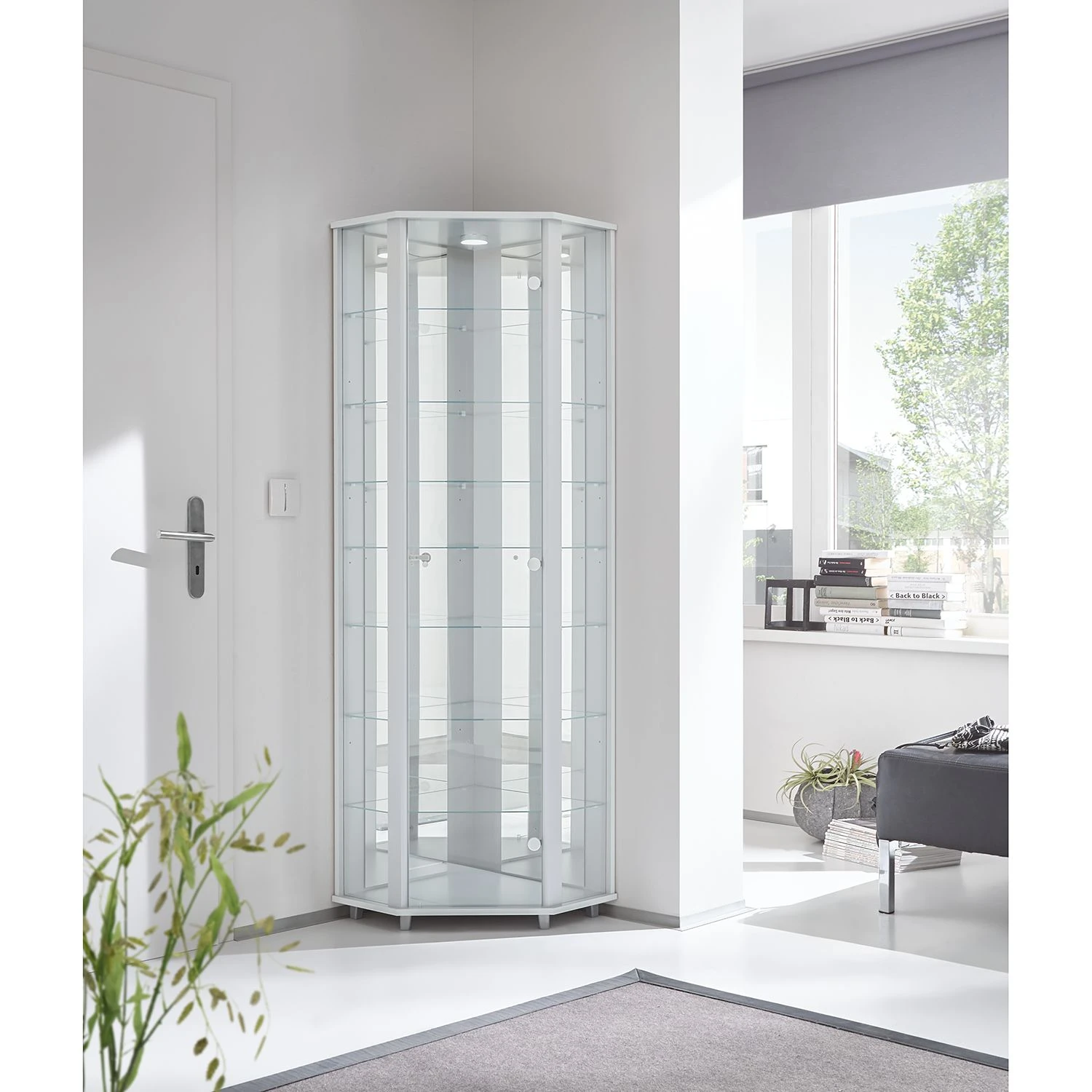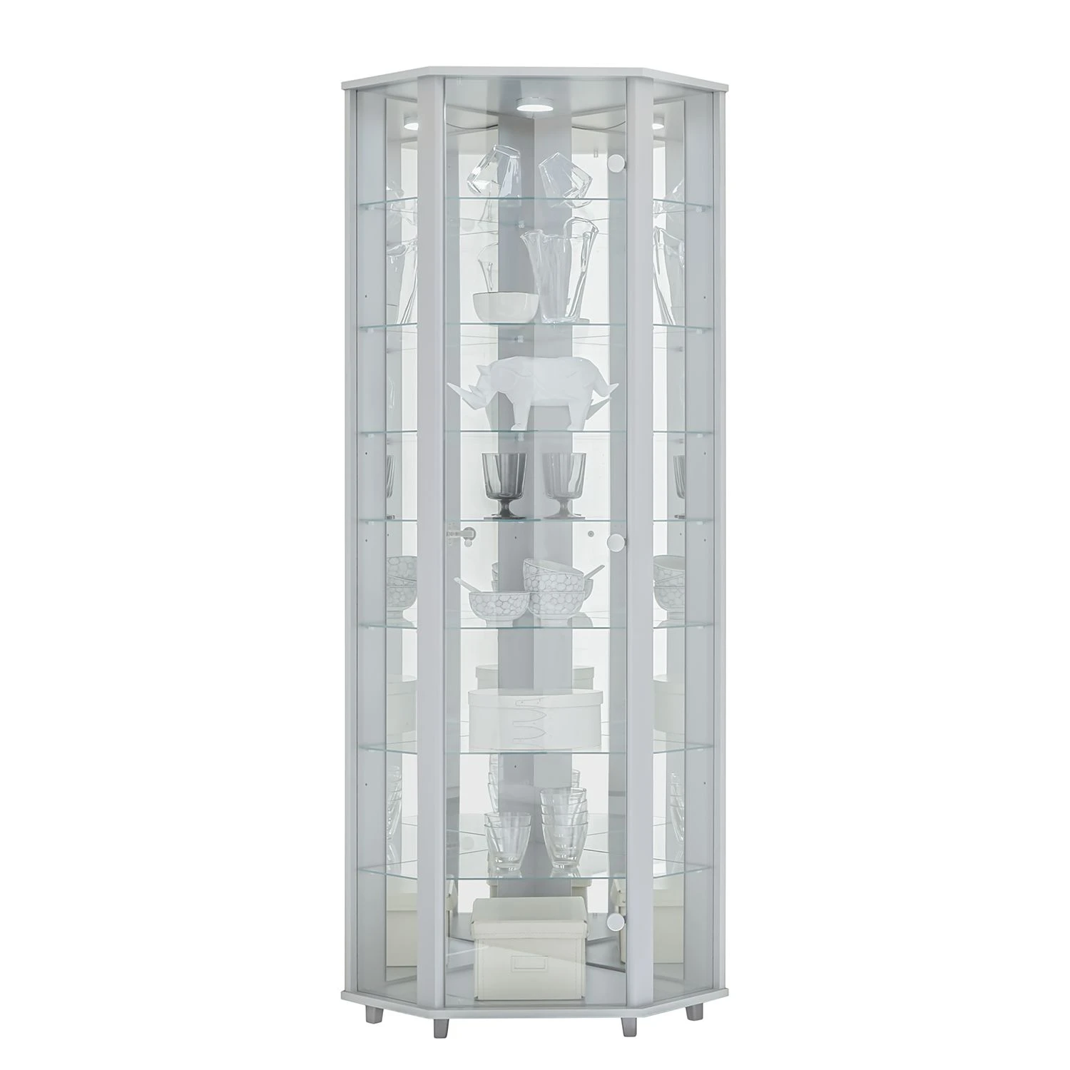 - Lieferumfang: Eckvitrine ohne Dekoration