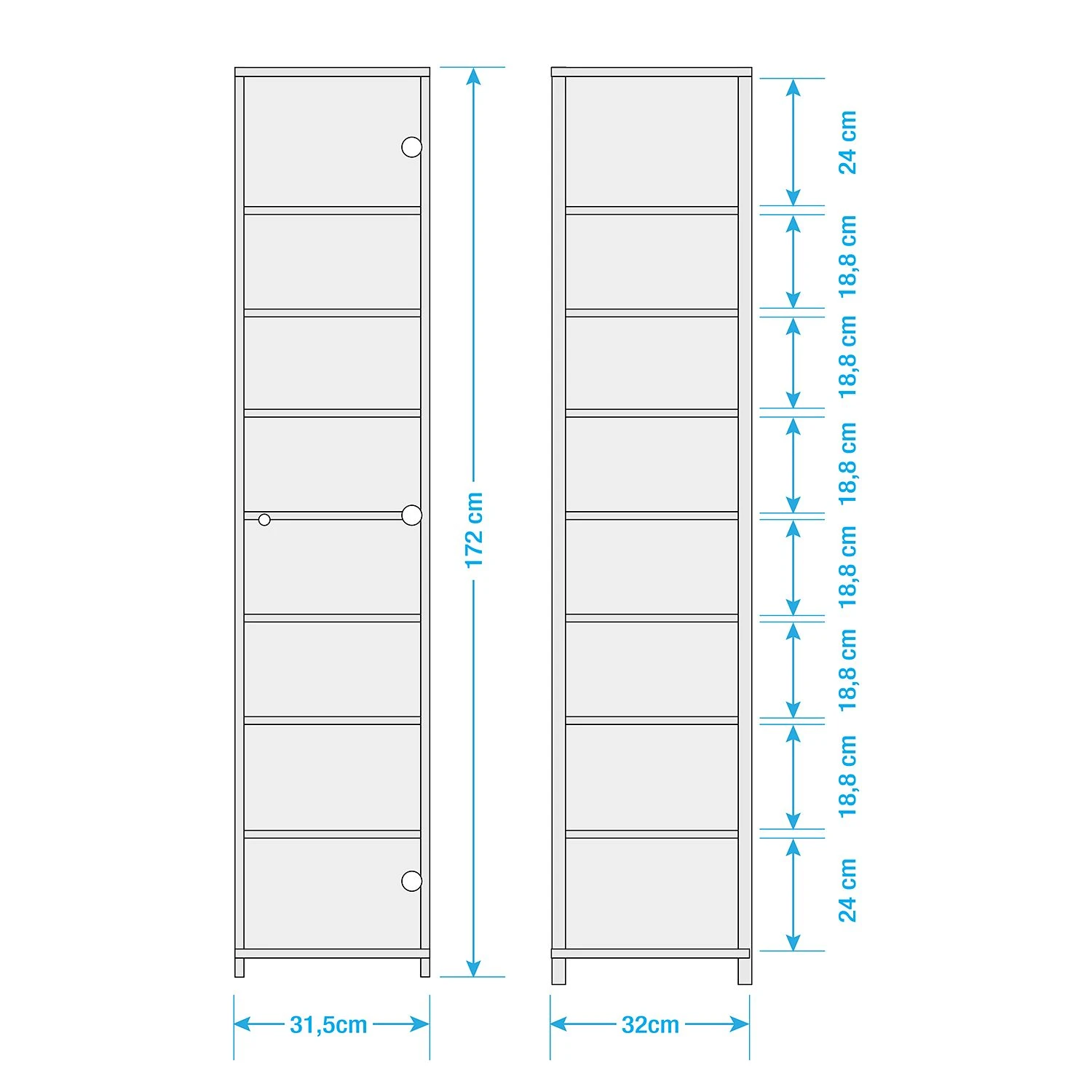 - 1 Glastür, Anschlag rechts