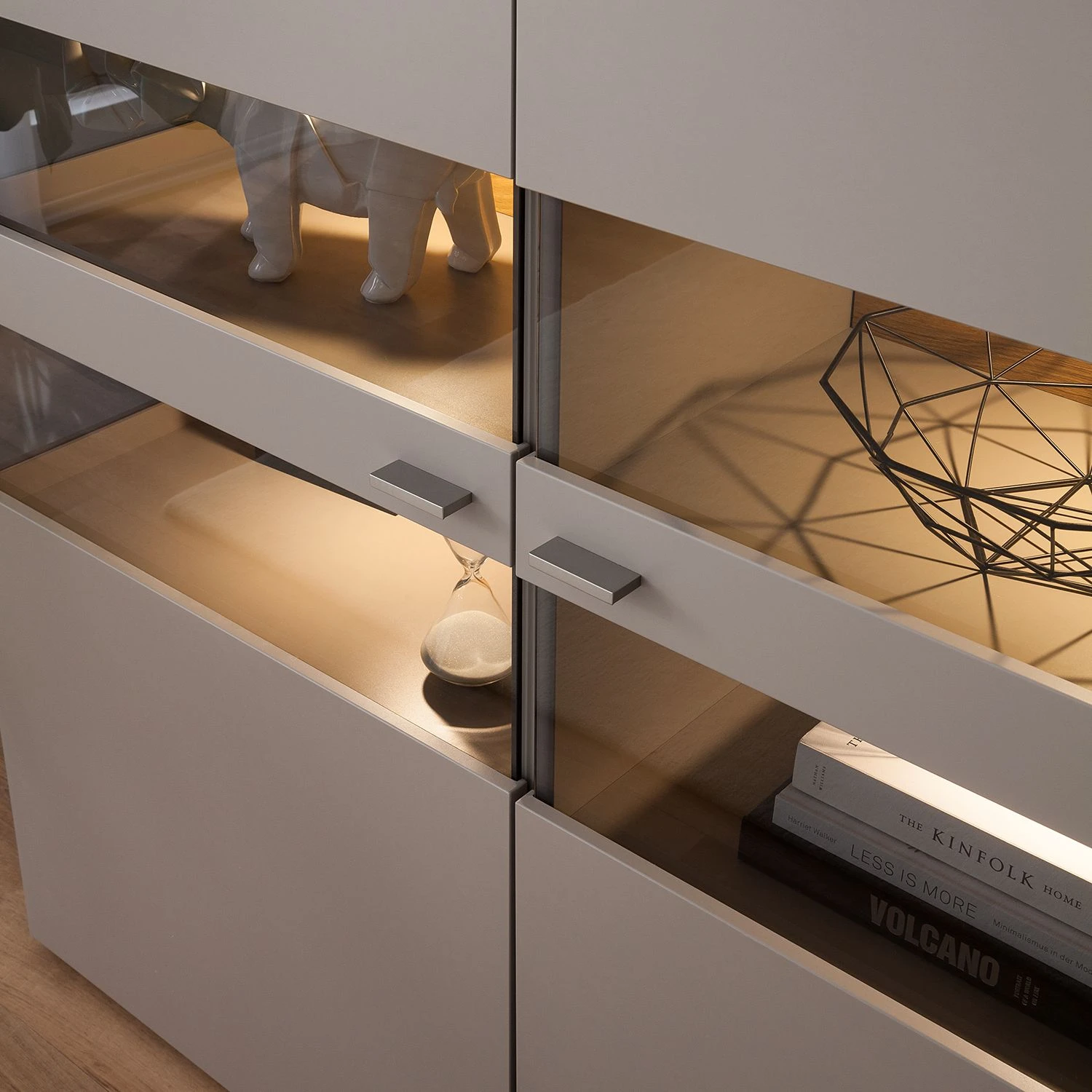 - 2 Glas-/Holztüren, je 3 Konstruktions- & 1 Einlegeboden