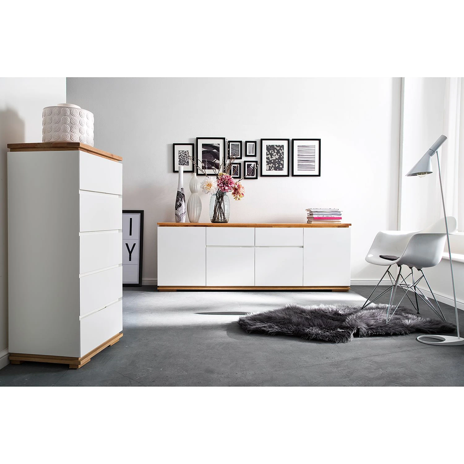 - Front & Korpus: MDF (Mitteldichte Holzfaserplatte), lackiert