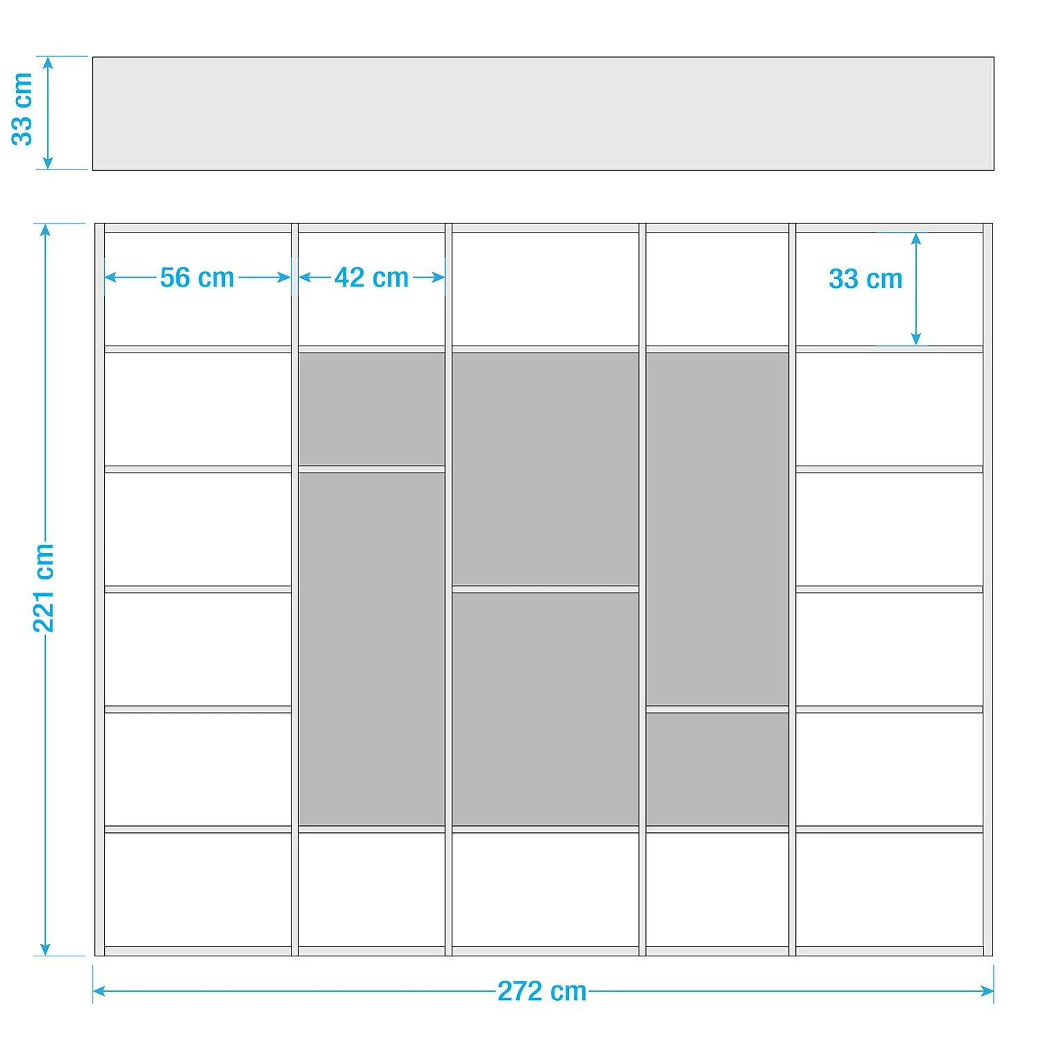 - Große Fächer: je 55,9 x 33 x 32,9 cm