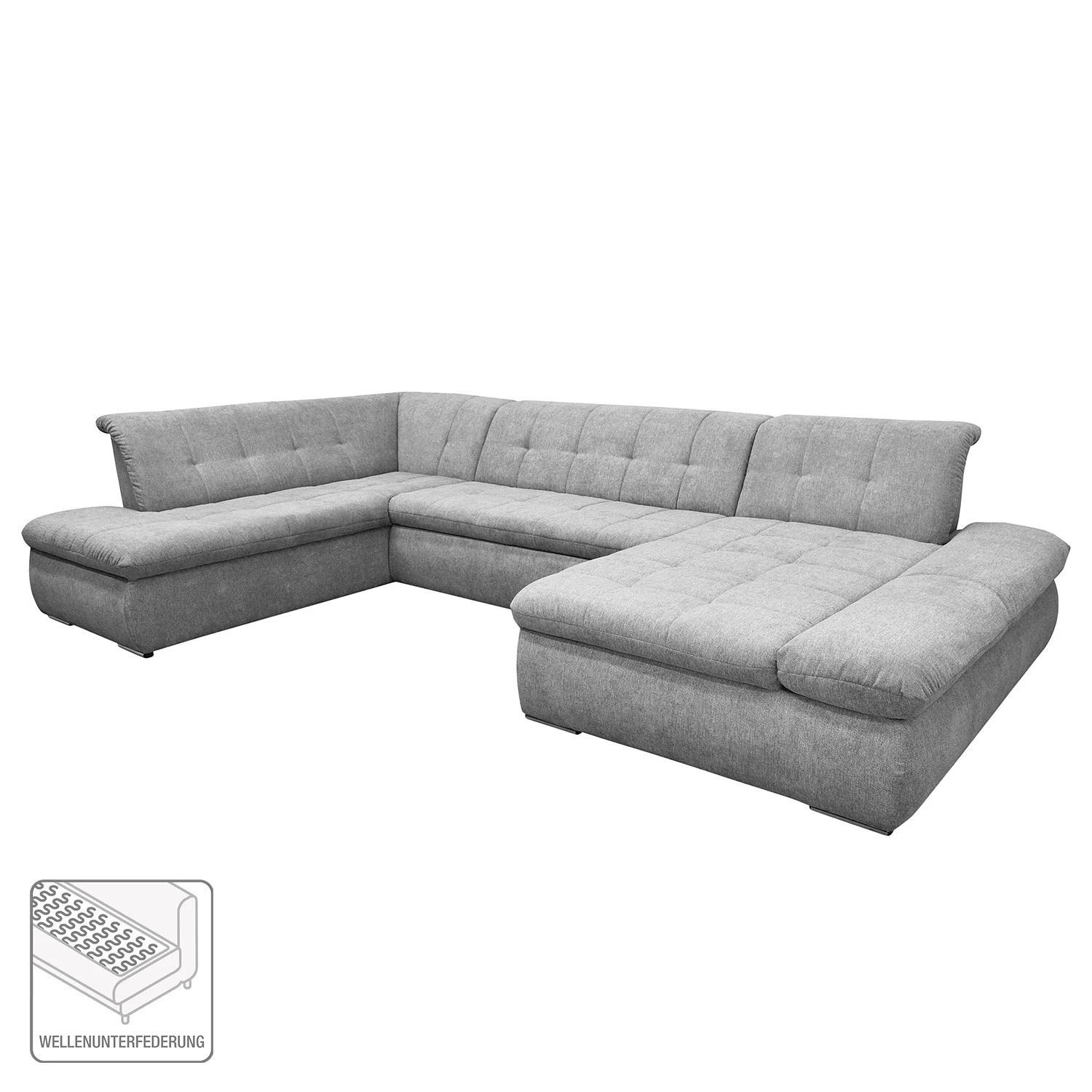 Loftscape Wohnlandschaft Lemley – Webstoff – Platin – Longchair davorstehend rechts – Keine Funktion