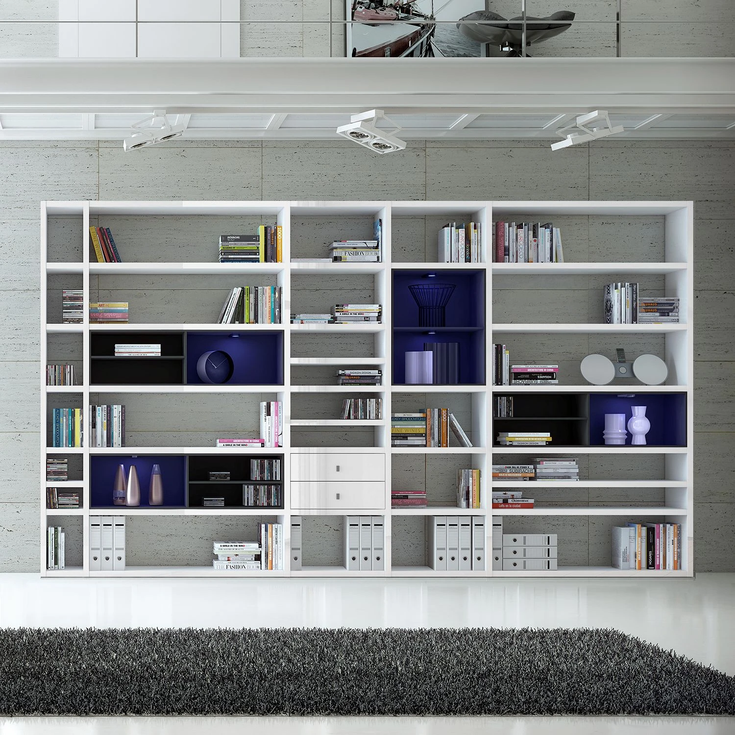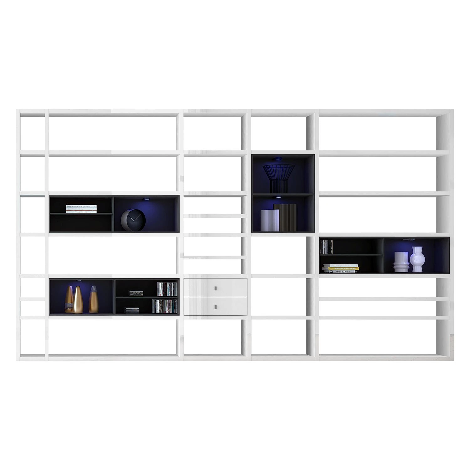 - Lieferumfang: XXL Regalwand ohne Dekoration