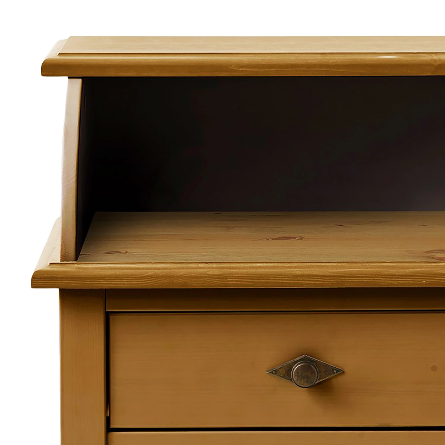 - Front & Korpus: Massivholz Kiefer, gebeizt & geölt