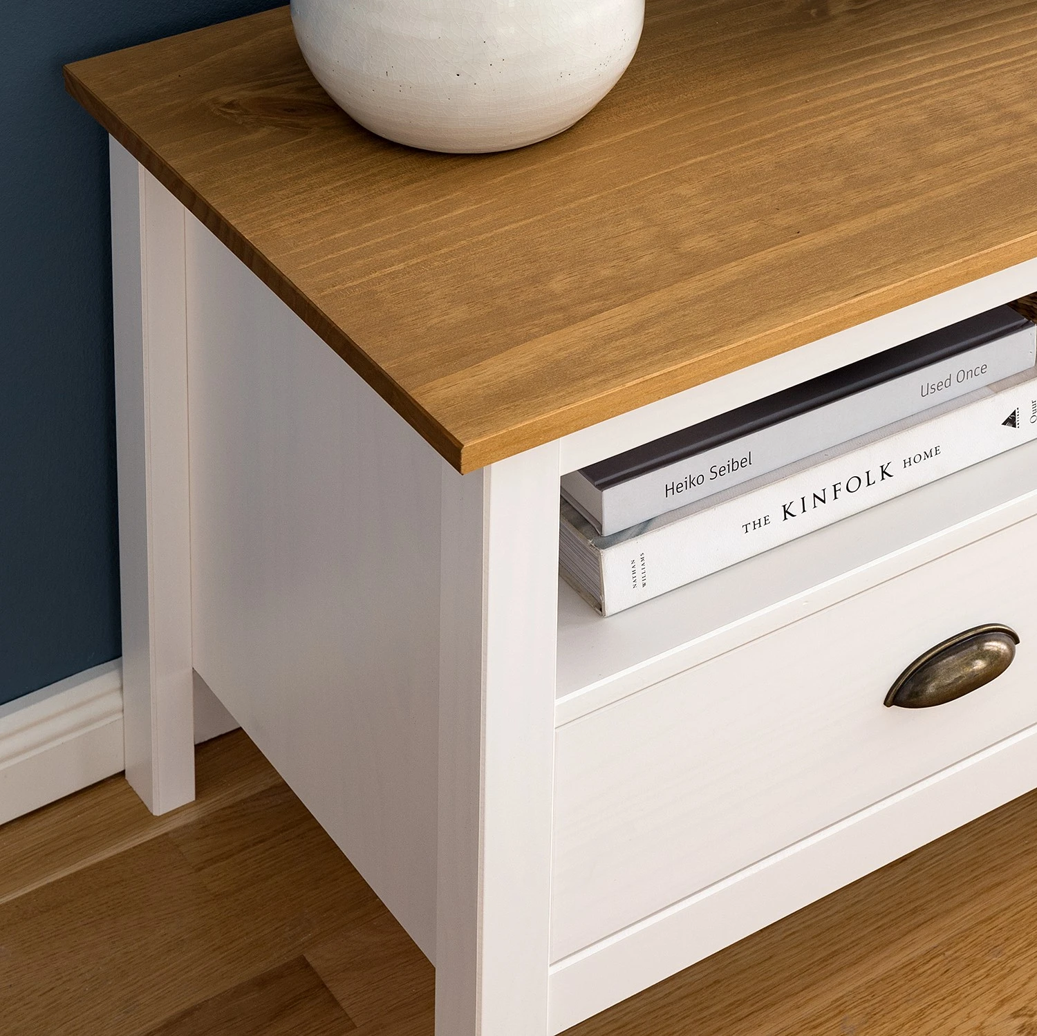 - Front & Korpus: Massivholz Kiefer, lackiert
