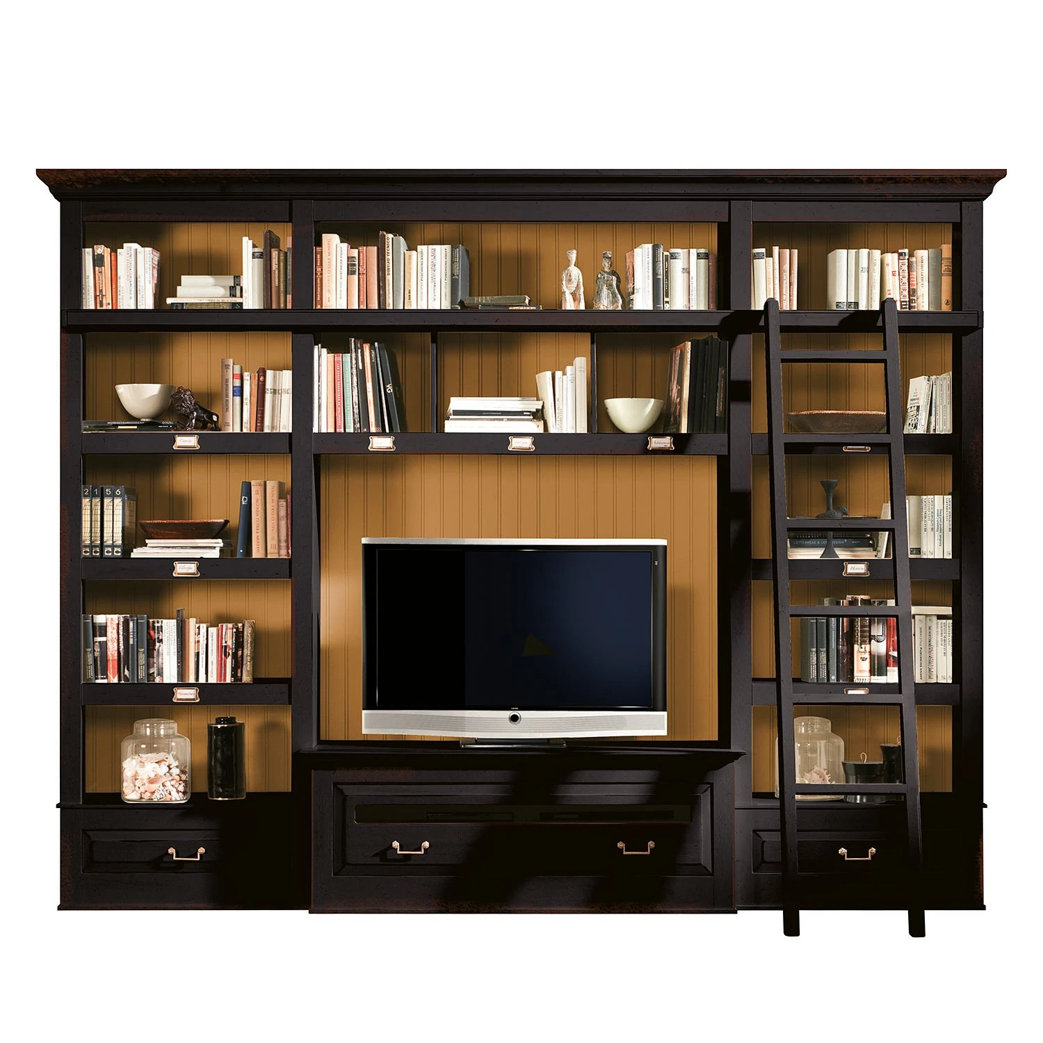 Maison Belfort TV-Wand Azjana I – Schwarz / Pinie Honig – Mit Leiter