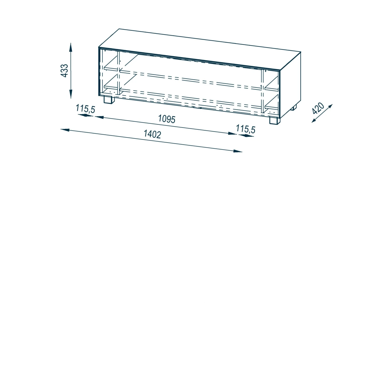 - Kleine Fächer: je 11,6 x 42 cm