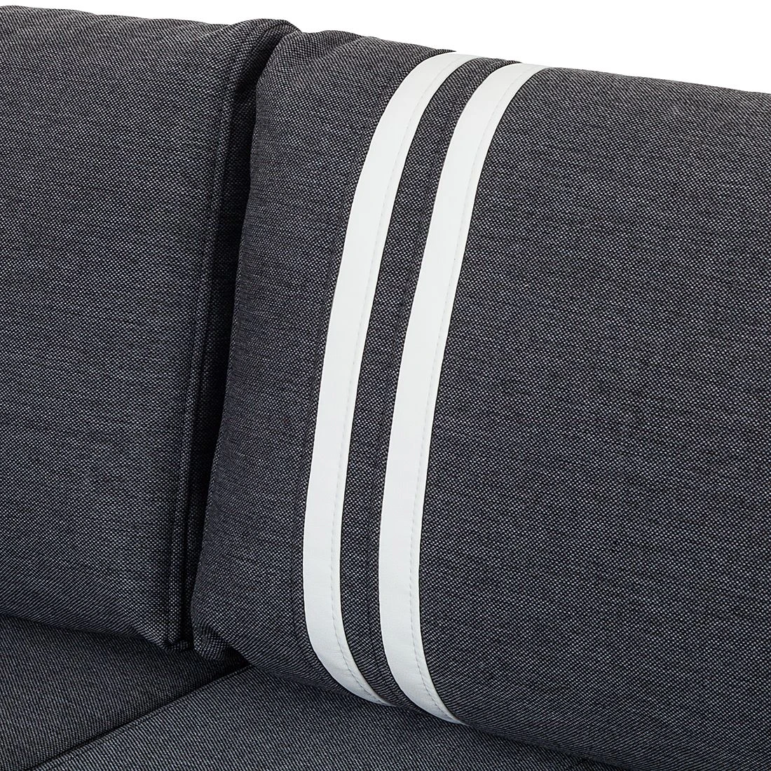- Optisches Highlight sind farblich abgesetzte Streifen im mittleren Kissen