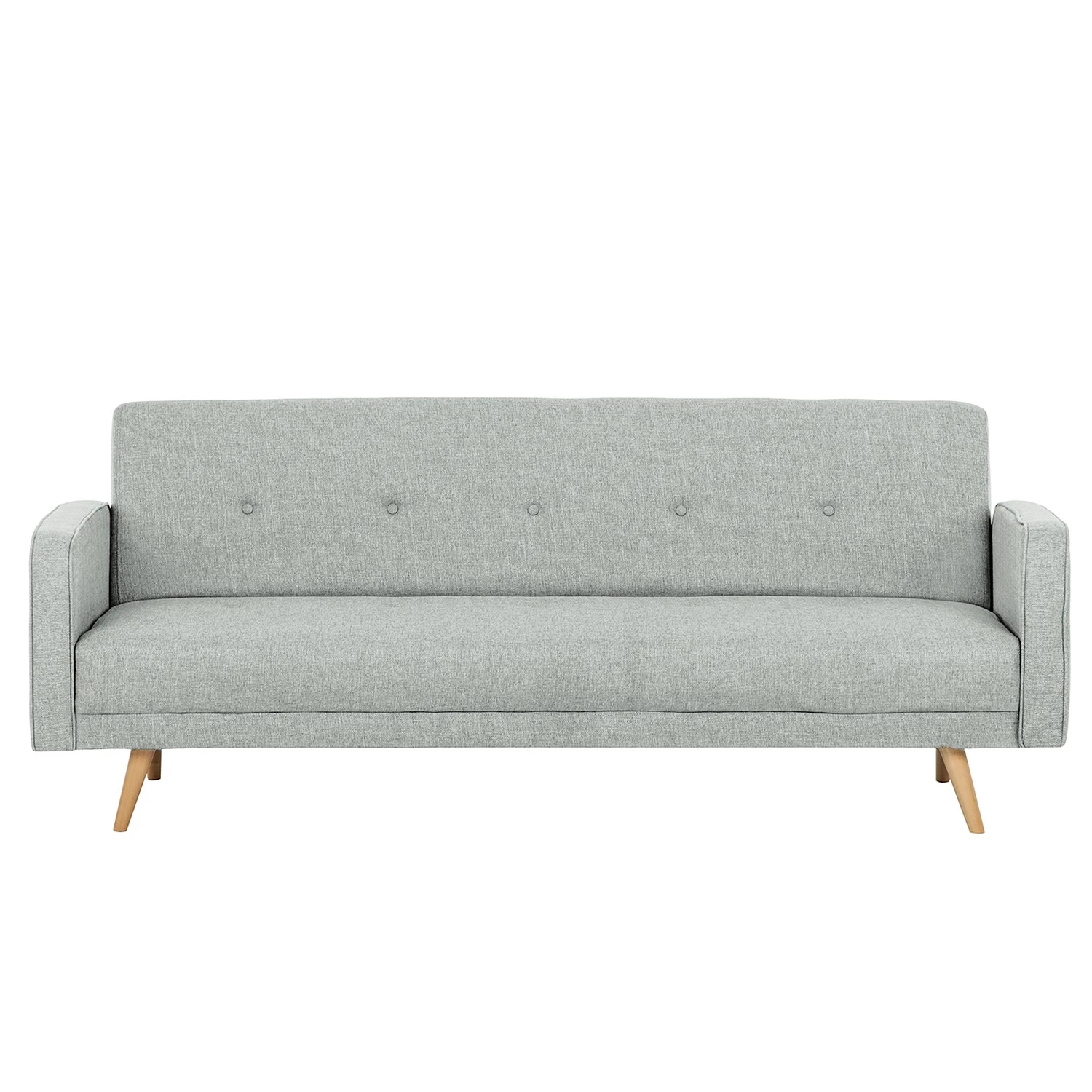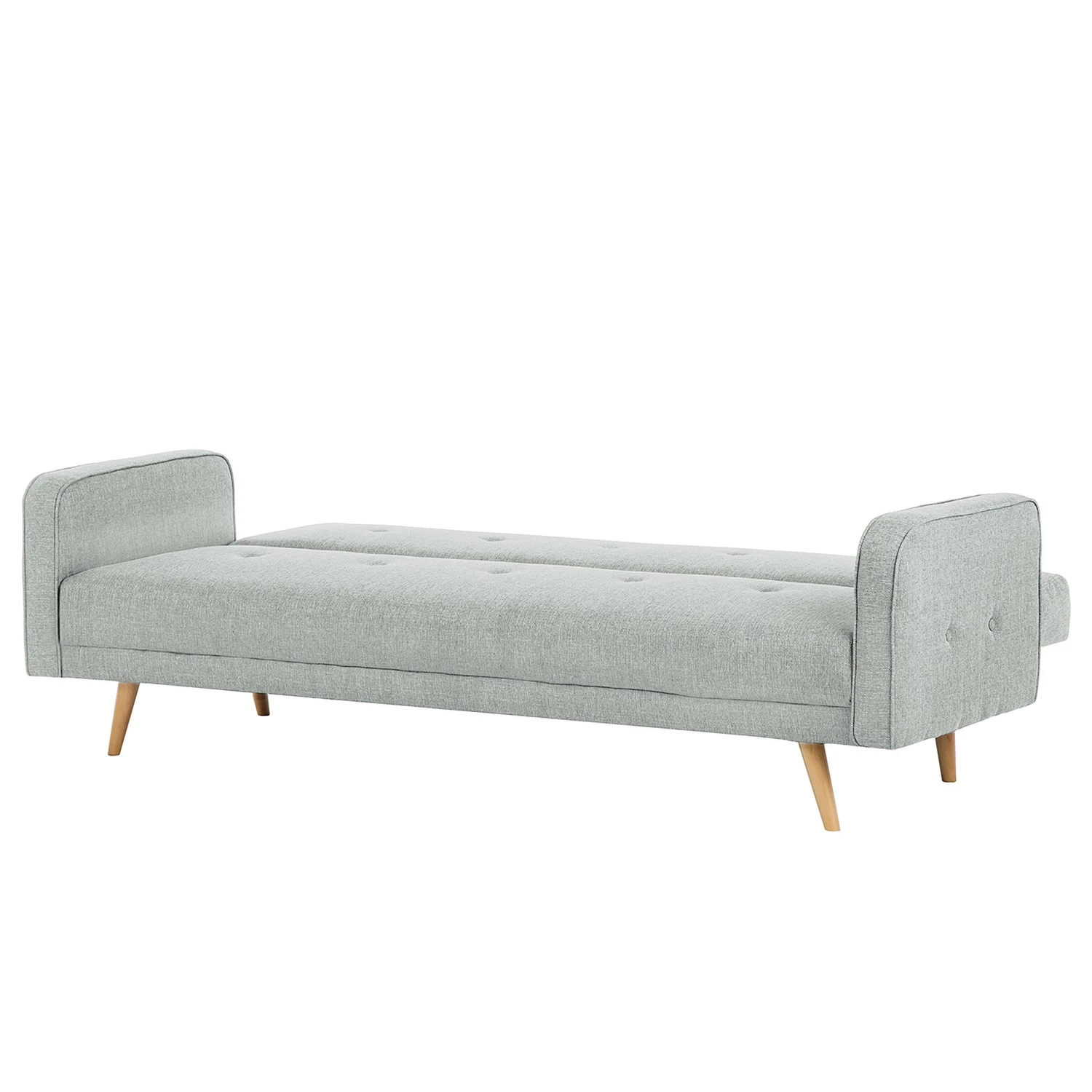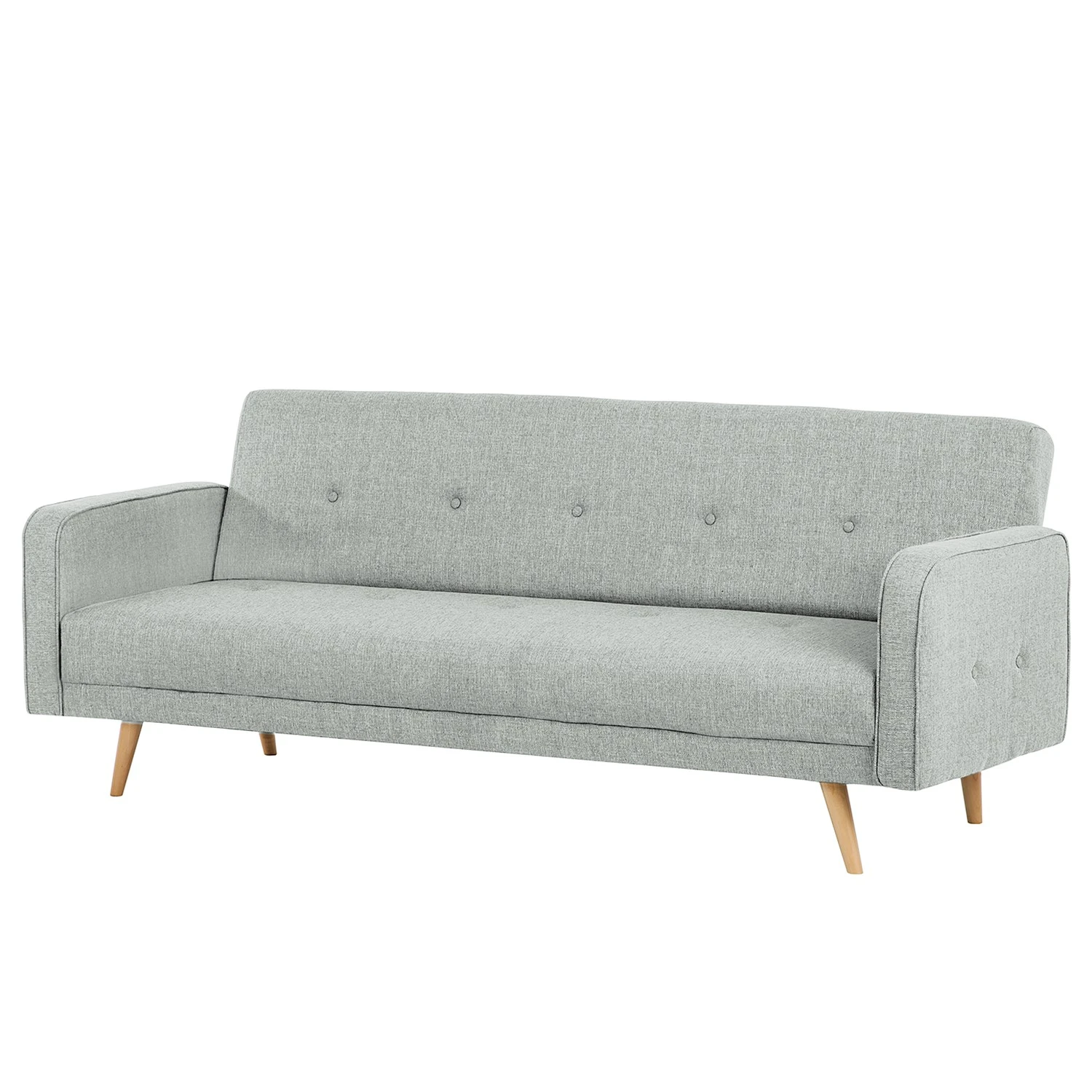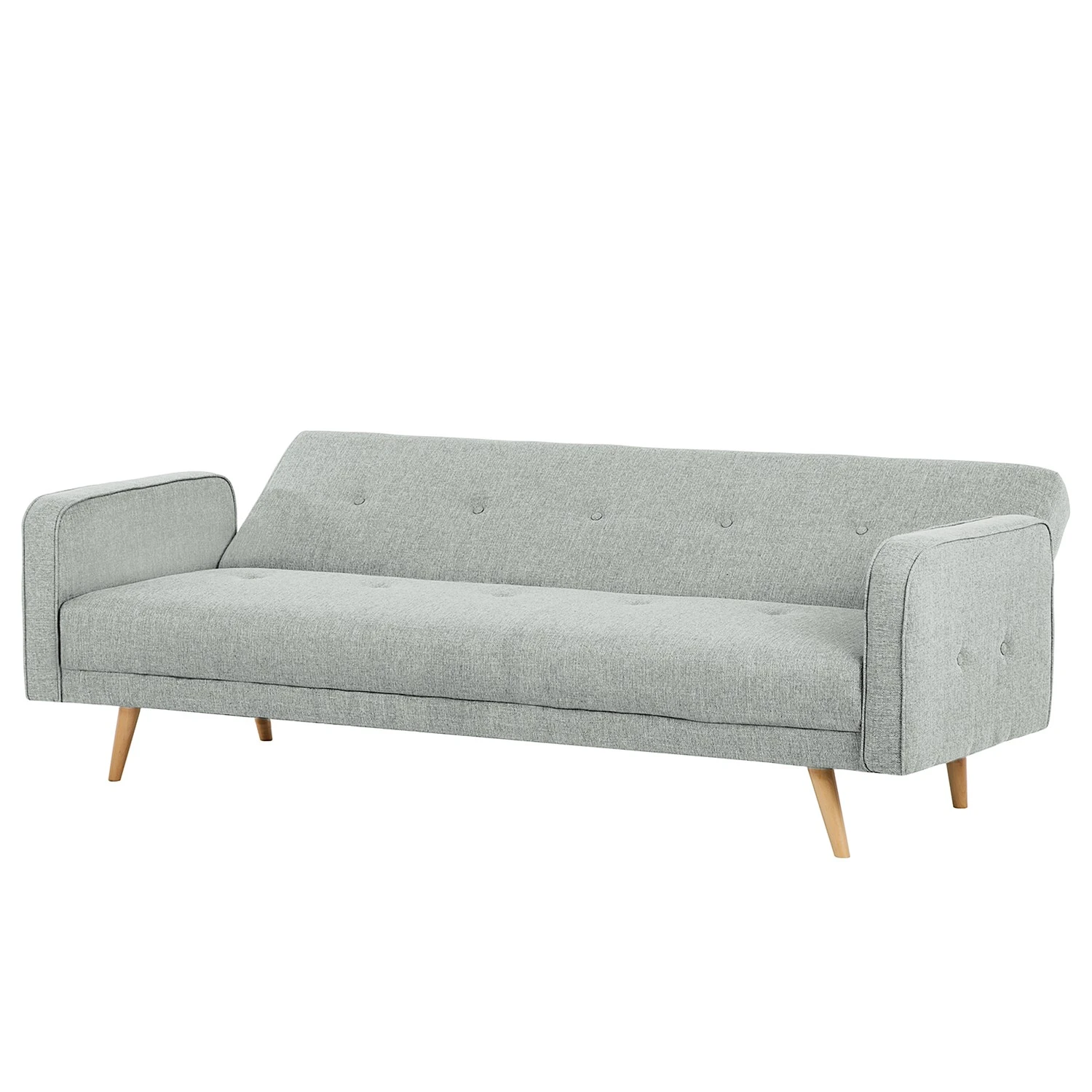 Das Schlafsofa Daru verkörpert einen Stil, der Gemütlichkeit und eine moderne Formensprache geschickt miteinander vereint. Oben abgerundete Armlehnen, schmale Beine und ein schlichter Webstoffbezug, der im Bereich der Lehne mit einer Knopfleiste aufwartet, machen das Design aus. Darüber hinaus bietet das Schlafsofa Daru eine hohe Funktionalität – so lässt sich zum Beispiel die Rückenlehne stufenlos verstellen. Ausgeklappt wartet das Sofa mit einer Liegefläche für zwei Personen auf. Die Polsterung des Sitzmöbels besteht aus hochwertigem Polyurethanschaumstoff.