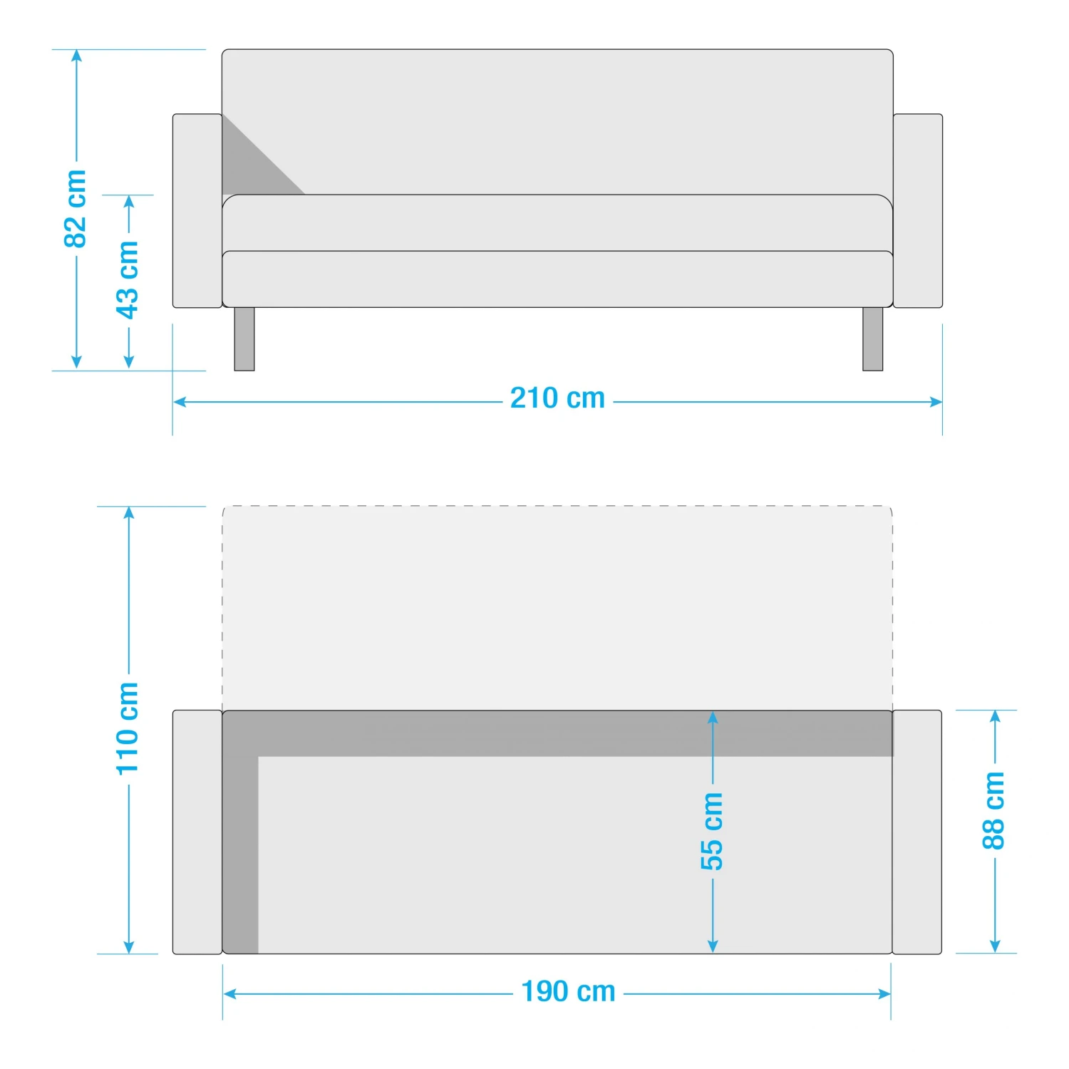 - Sitztiefe: 55 cm