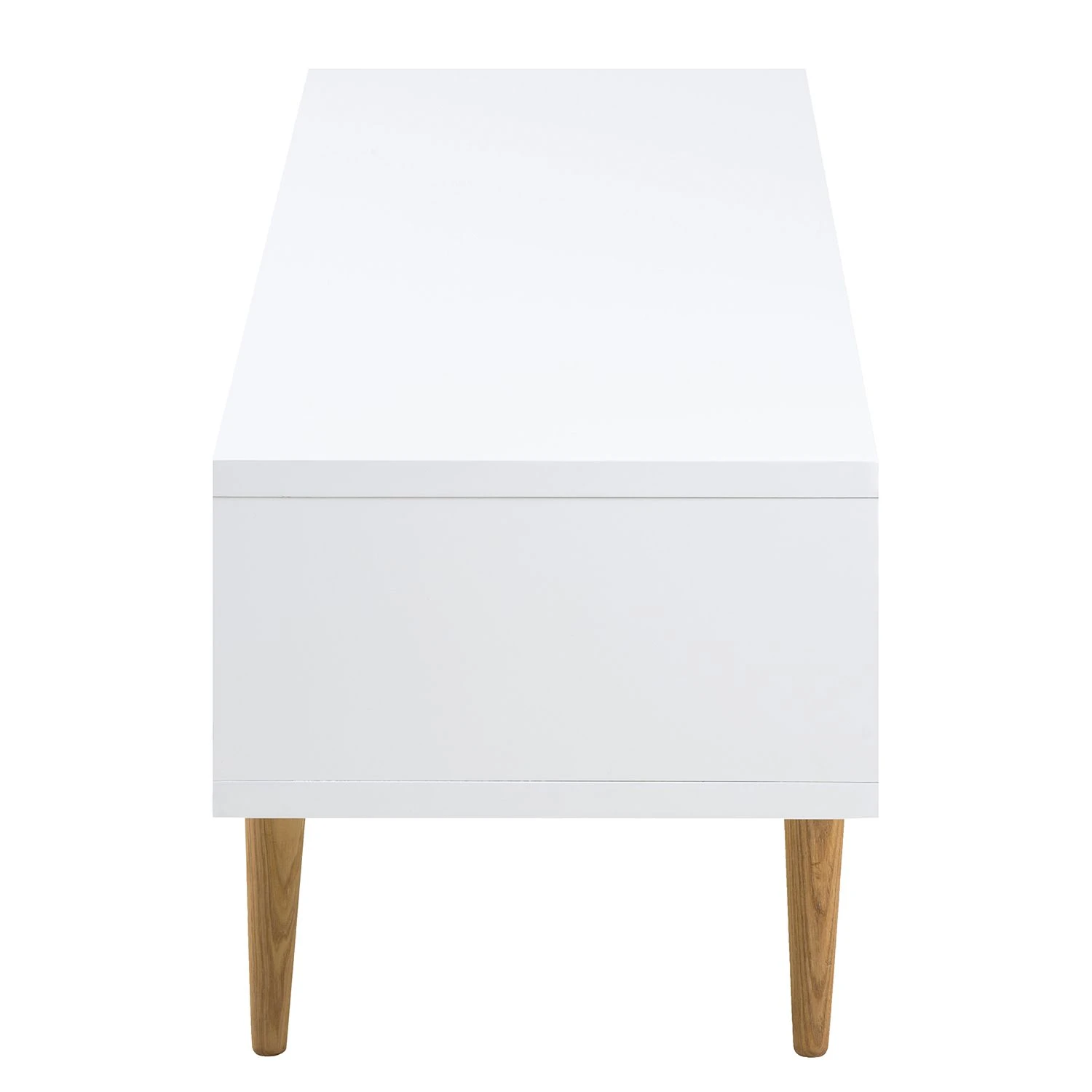 Das TV-Lowboard aus der Serie Roskilde beeindruckt mit seiner modernen geradlinigen Formgebung. Sein Korpus wurde aus weiß lackierten, mitteldichten Holzfaserplatten gefertigt. Das Gestell besteht aus pulverbeschichtetem Stahl. Eine perfekte Harmonie wird mit dem lackierten Weiß des Korpus und der leichten Maserung des massiven Eschenholzes der schlanken Beine erzeugt. So bekommt das Möbelstück ein natürliches und frisches Aussehen. Genügend Stauraum bekommt das TV-Lowboard Roskilde durch zwei Schiebetüren und ein Gerätefach, welches durch einen Glasboden geteilt ist. Ein Loch in der Rückwand ermöglicht eine praktische Handhabung der vorhandenen Gerätekabel.