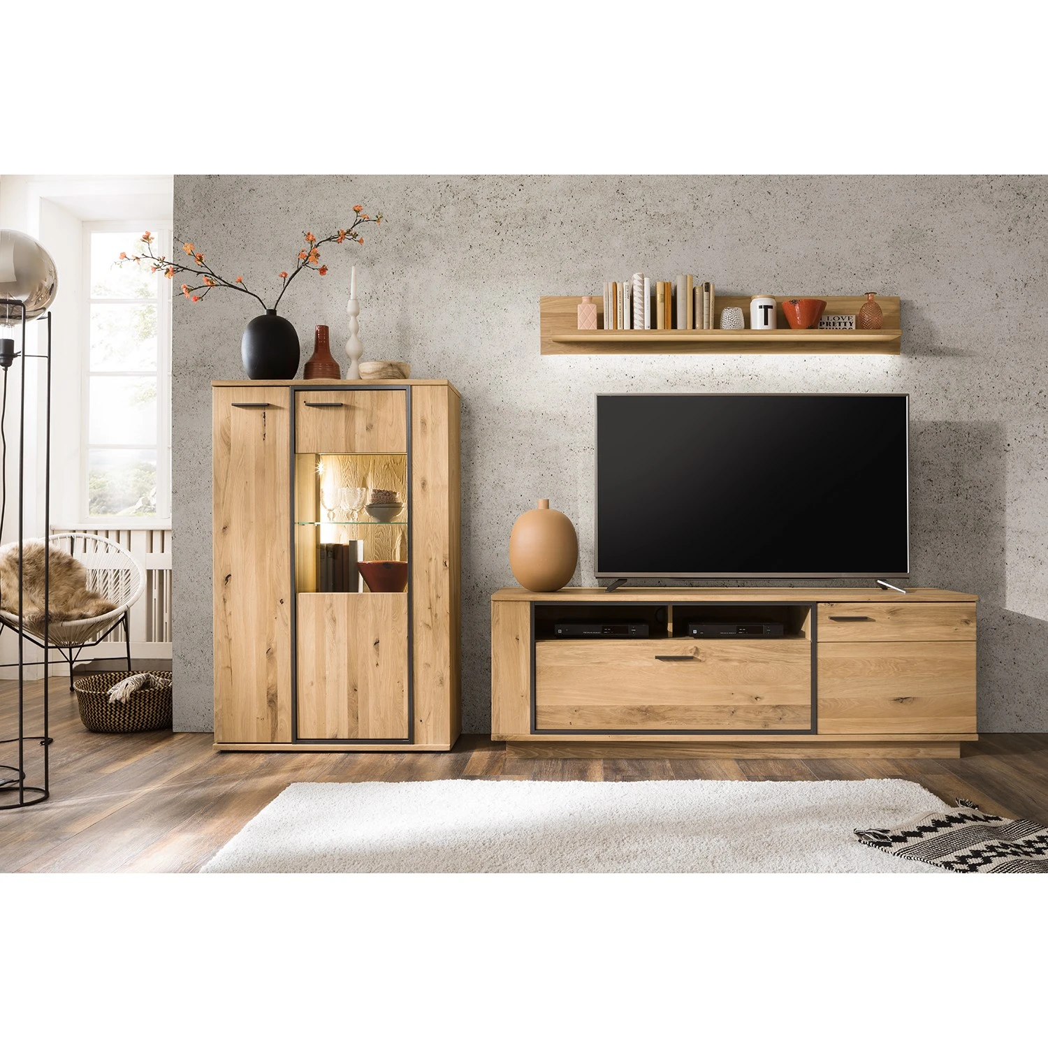 - Korpus & Sockel: Spanplatte, furniert & geölt