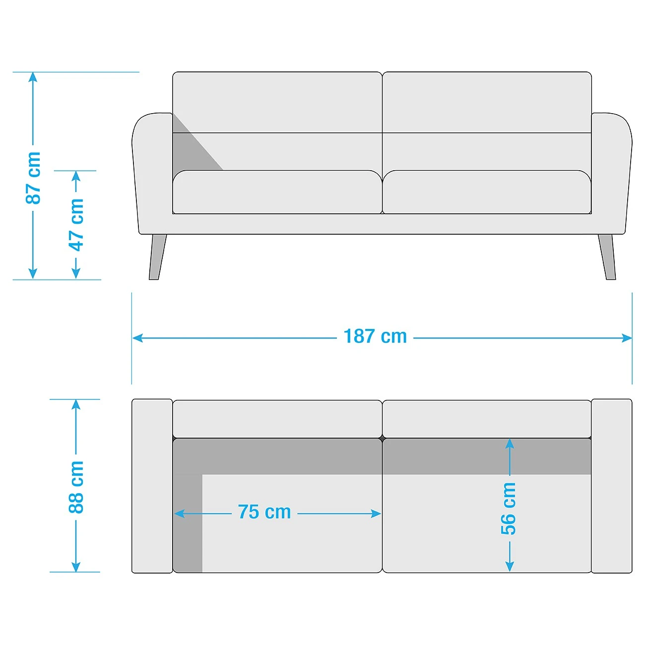 - Tiefe Sitzelement: 56 cm