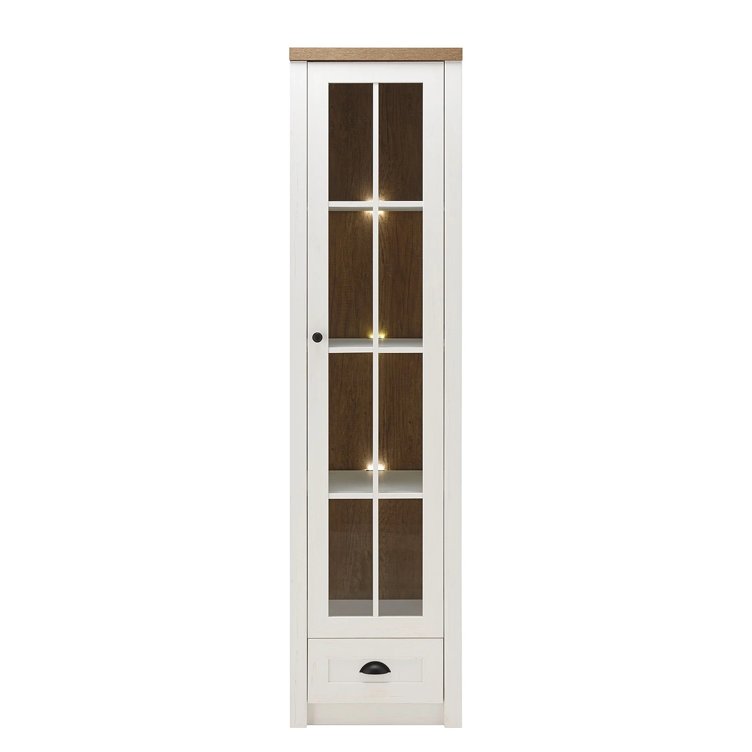 - Lieferumfang: 1 Vitrine, 1 Wandboard, 1 Lowboard & 1 Regal ohne Beleuchtung & Dekoration