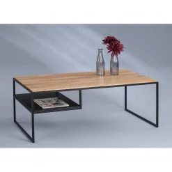 Loftscape Couchtisch Donelson – Eiche massiv / Metall – Eiche / Schwarz