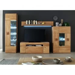 Naturoo Highboard Forge II – Eiche teilmassiv – Balkaneiche Bianco / Eiche Bianco – Glastür rechts