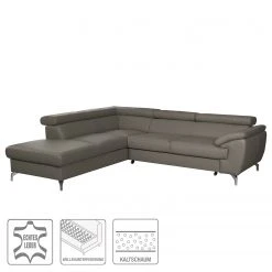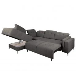 Loftscape Ecksofa Panica I – Webstoff – Schlaffunktion – Silbergrau – Ottomane davorstehend links