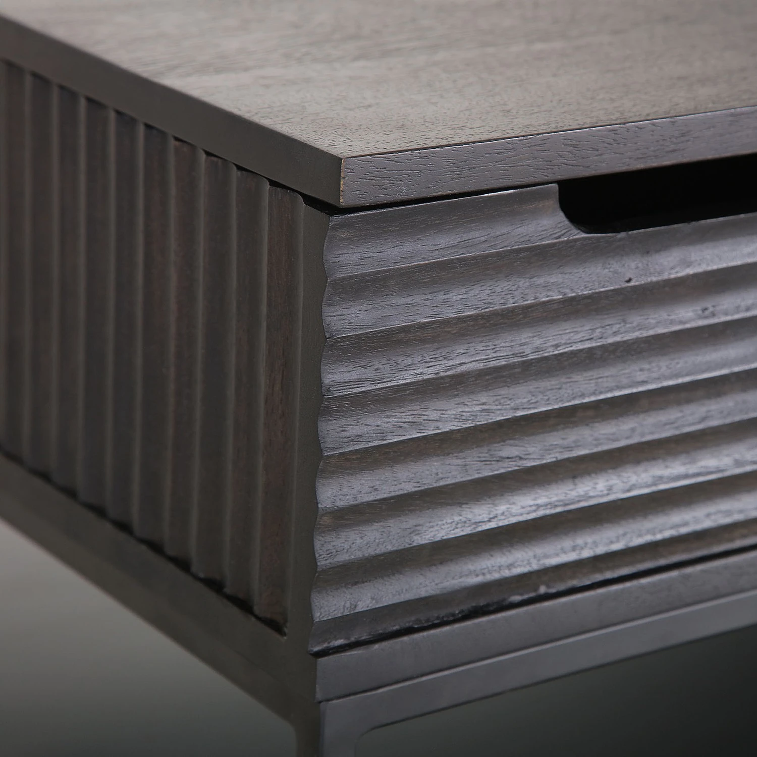 - Front, Korpus & Ablage: Massivholz Akazie, gebeizt & lackiert