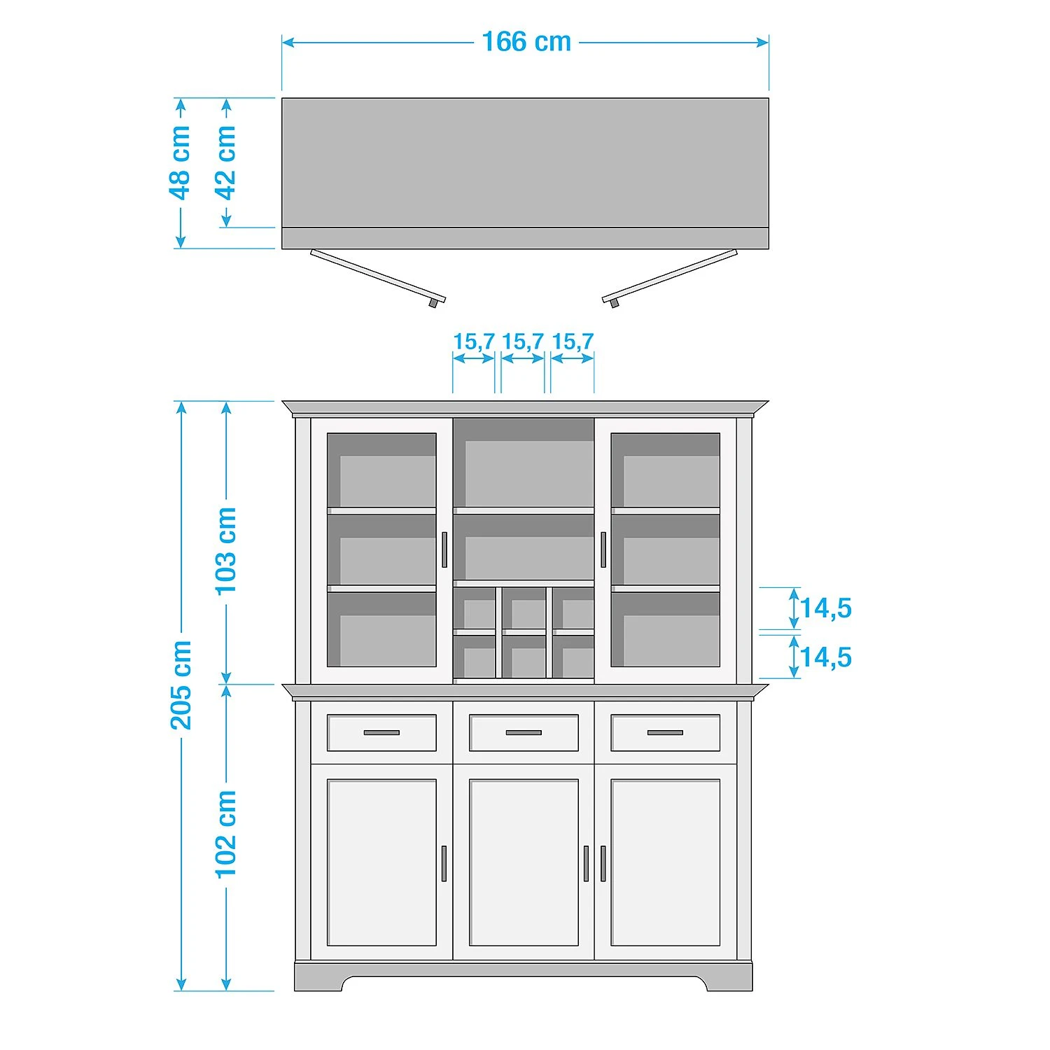 - Aufsatz (BHT): 166 x 103 x 42 cm