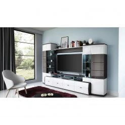 Loftscape Wohnwand Intento (4-teilig) – Hochglanz Weiß / Anthrazit