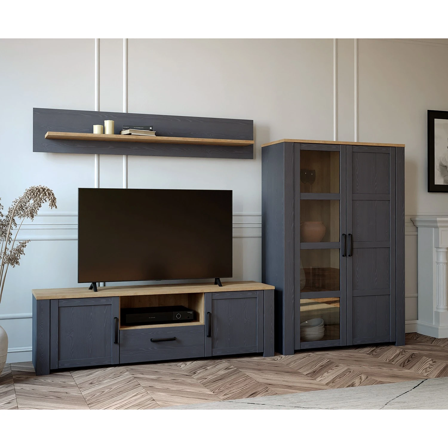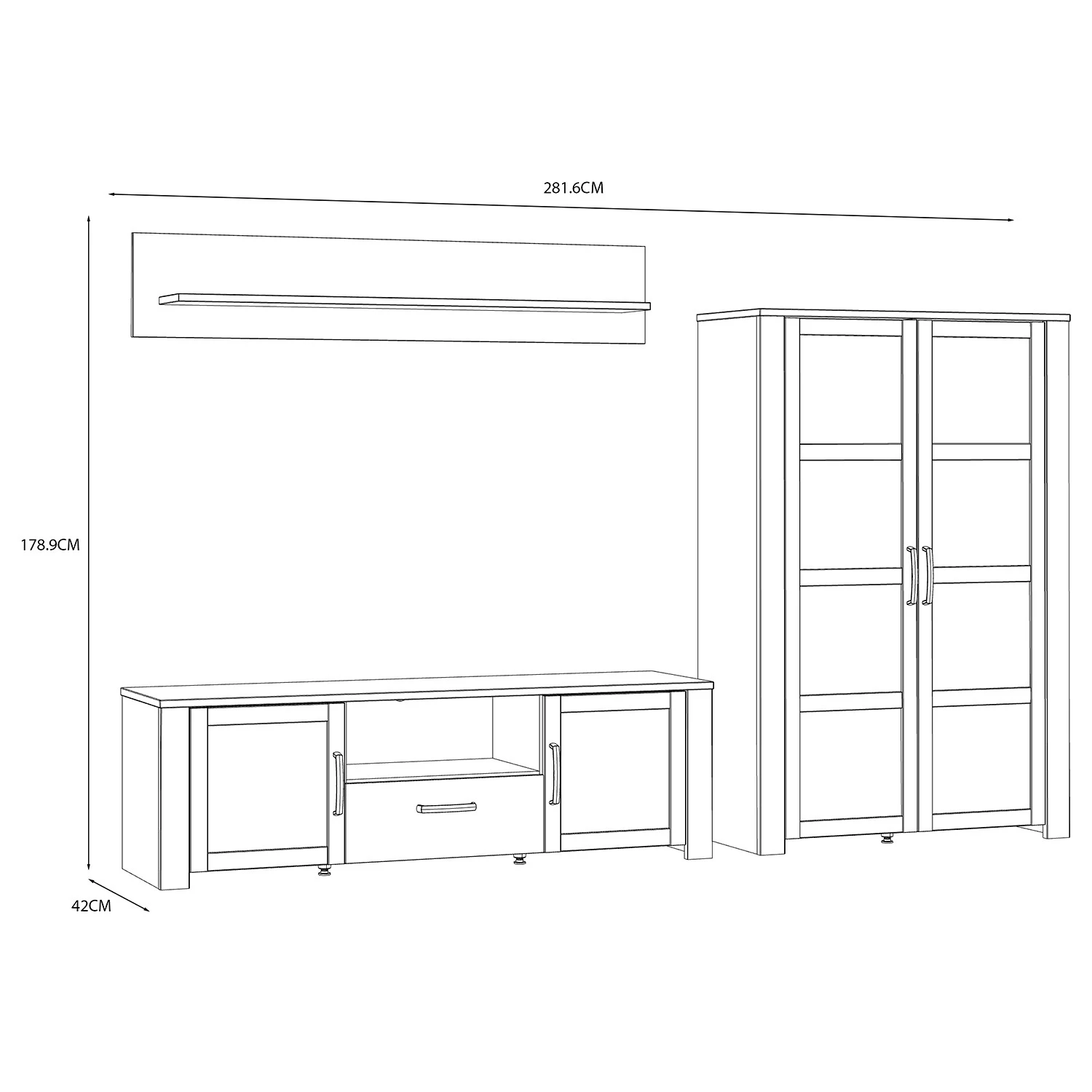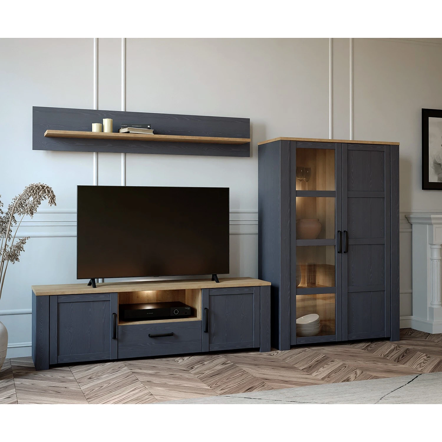 - Lieferumfang: Wohnwand bestehend aus 1 Wandboard, 1 Lowboard & 1 Highboard ohne Dekoration