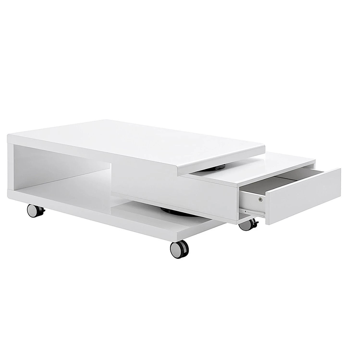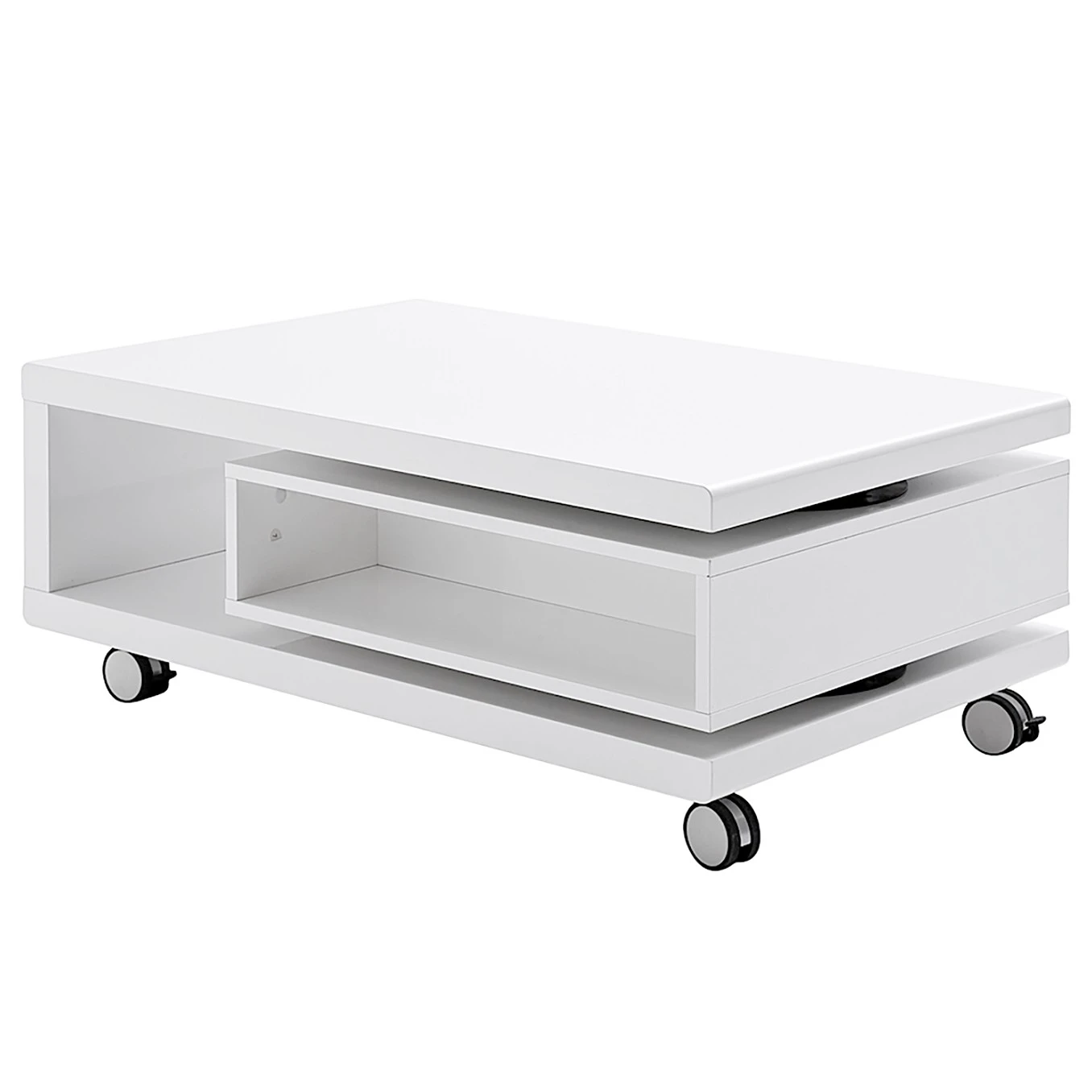 roomscape steht für hochwertige Produkte für diverse Wohnbereiche. Mithilfe der Rollen an den Beinen lässt er sich außerdem problemlos in unterschiedlichen Räumen nutzen. Nicht zuletzt erwähnenswert ist auch die Drehmöglichkeit dieses Couchtischs. Das Modell ist genau das Richtige, wenn Sie ein modernes Design bevorzugen. Ausgesprochen gut macht sich dieser Tisch von roomscape mit einem Sofa im modernen Stil.