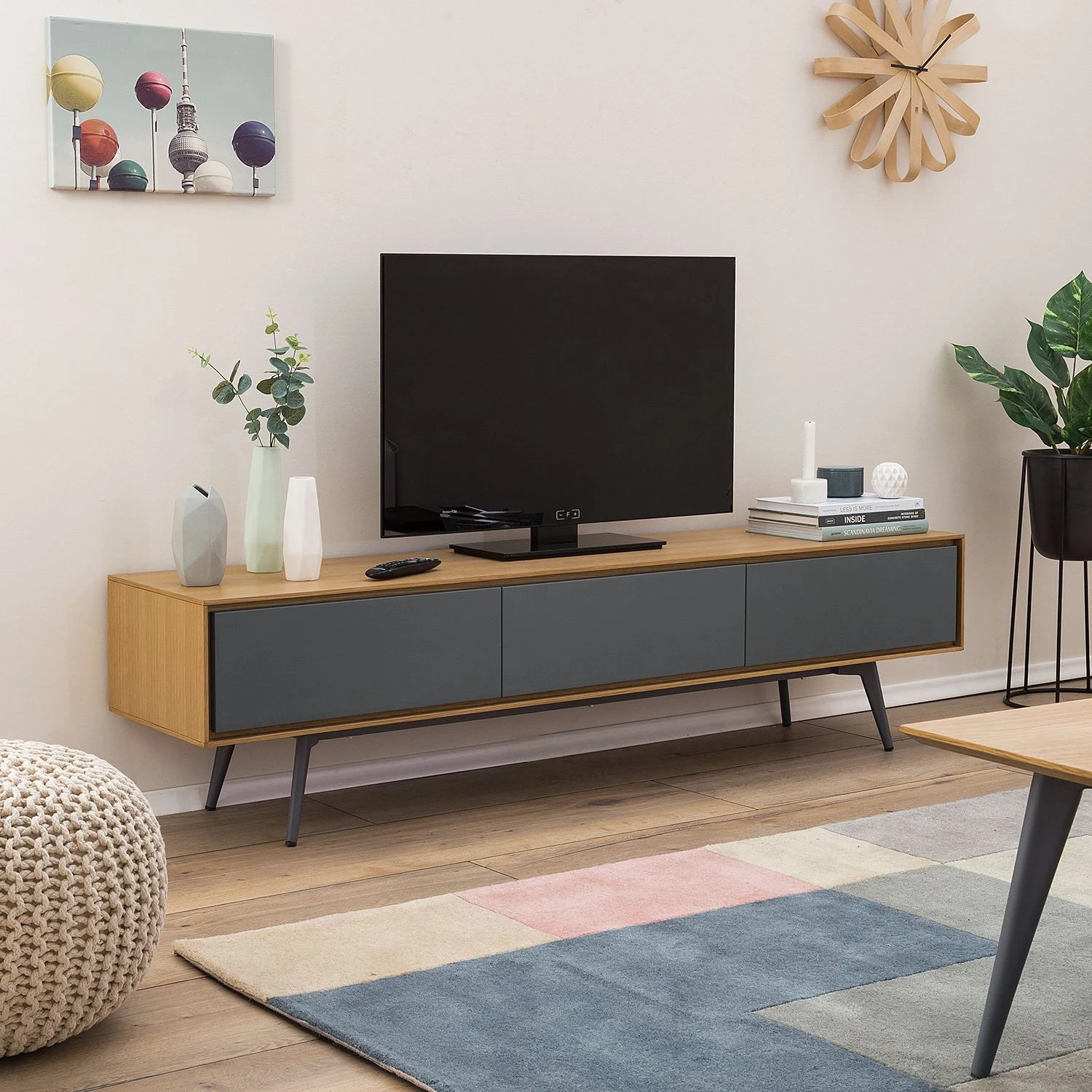 - Korpus: MDF (Mitteldichte Holzfaserplatte), furniert