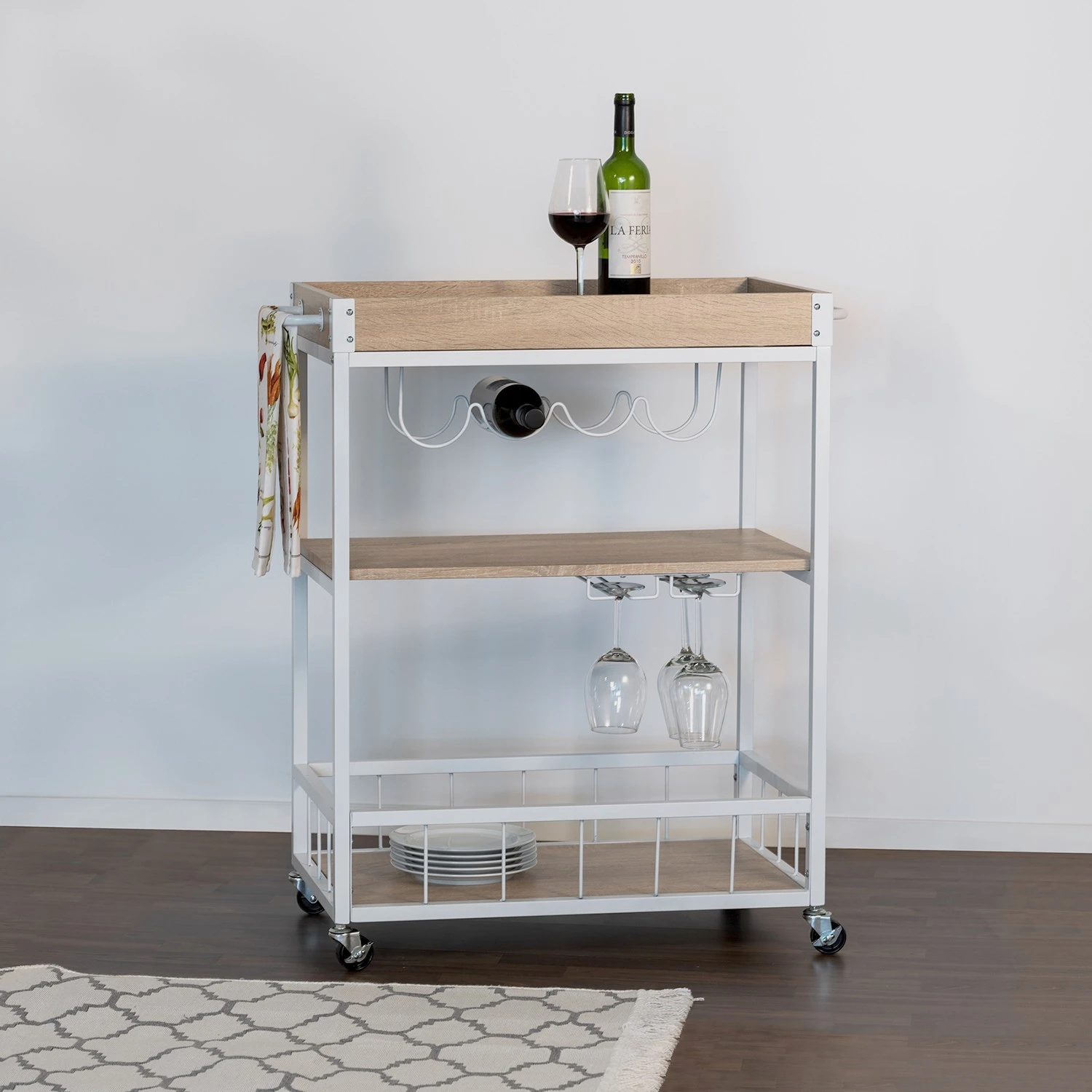 - Ablagen & Tablett: MDF (Mitteldichte Holzfaserplatte), foliert