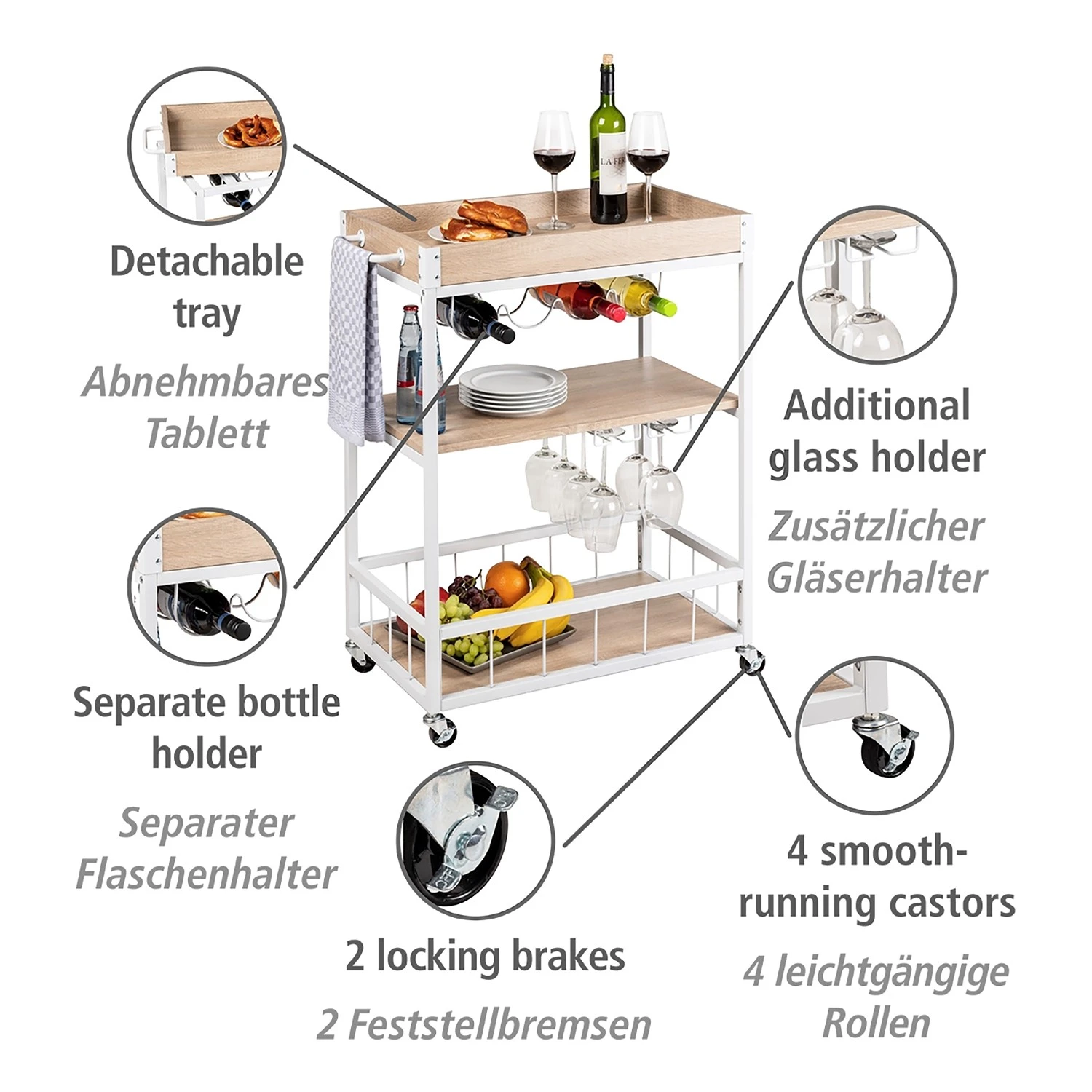 - Weitere Qualitätsmerkmale: Abnehmbares Tablett