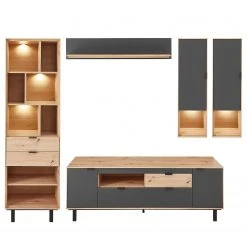 Fashion For Home Wohnwand Leox I (4-teilig) – Inkl. Beleuchtung – Graphit / Eiche Artisan Dekor